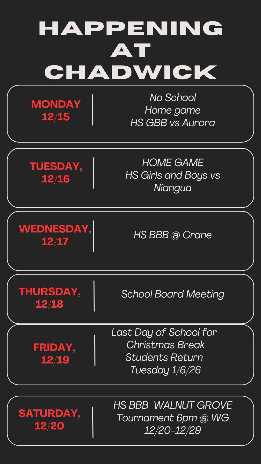 This Week at Chadwick 12/15-12/20
