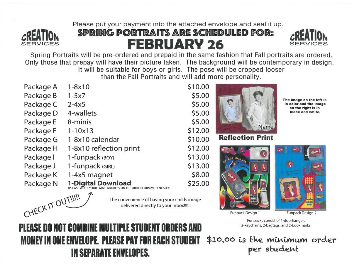 Thursday 2/26 Chadwick will have their Spring Pictures. This will not include class pictures or sports pictures, those be at a later date. Seniors will take their group picture and Senior baseball players will take this senior banner pictures. If you are doing group pictures for Spring pictures please write on your envelope and let your teacher know. If you have any questions please call the front office.